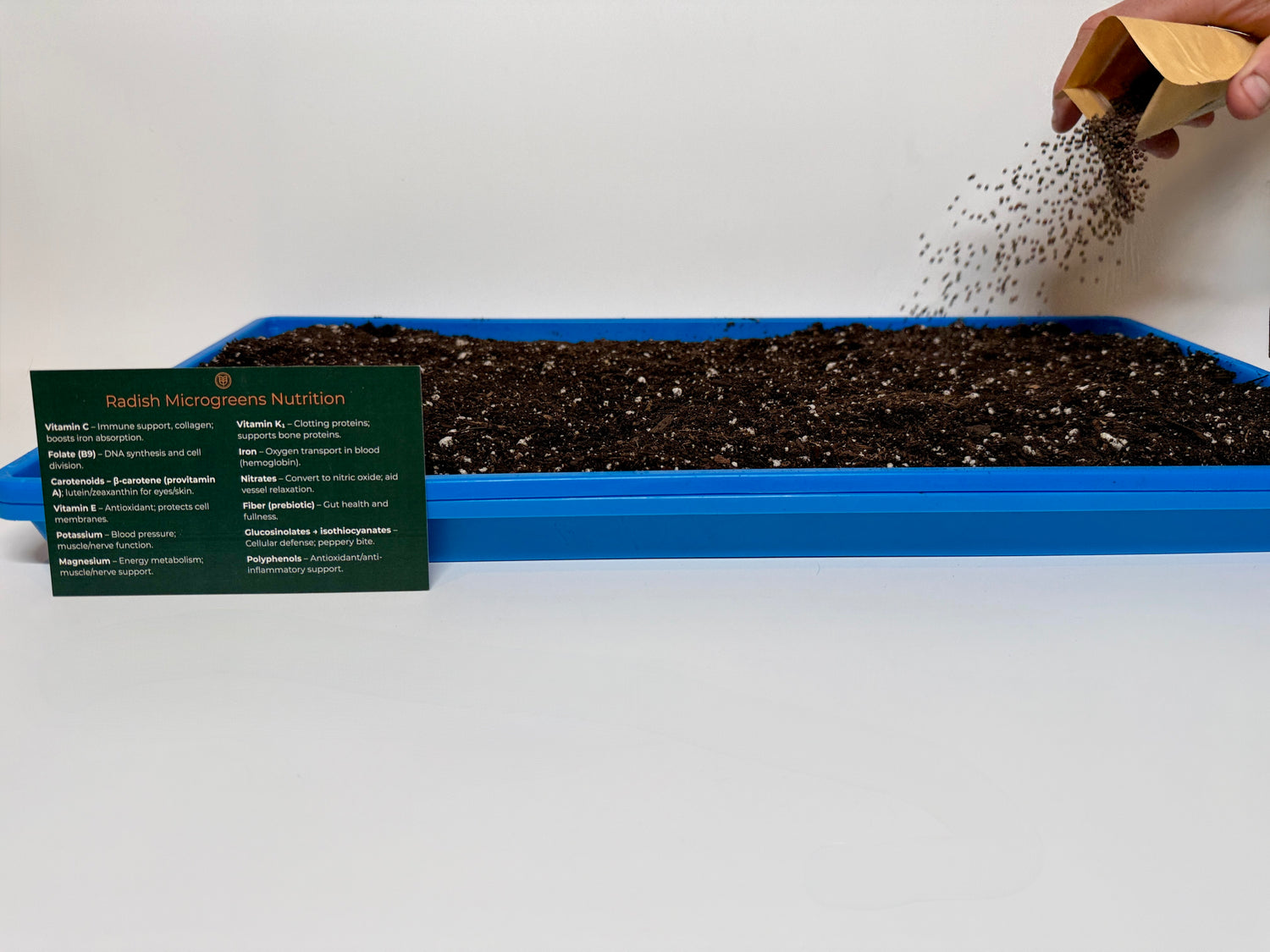 Supplementing with microgreens has never been easier. Our starter kits make it effortless to start growing your own nutrient-rich greens at home. And once you’re set up, our monthly seed subscriptions come with clear planting instructions and nutrition info to keep you growing fresh, healthy greens all month long.